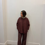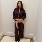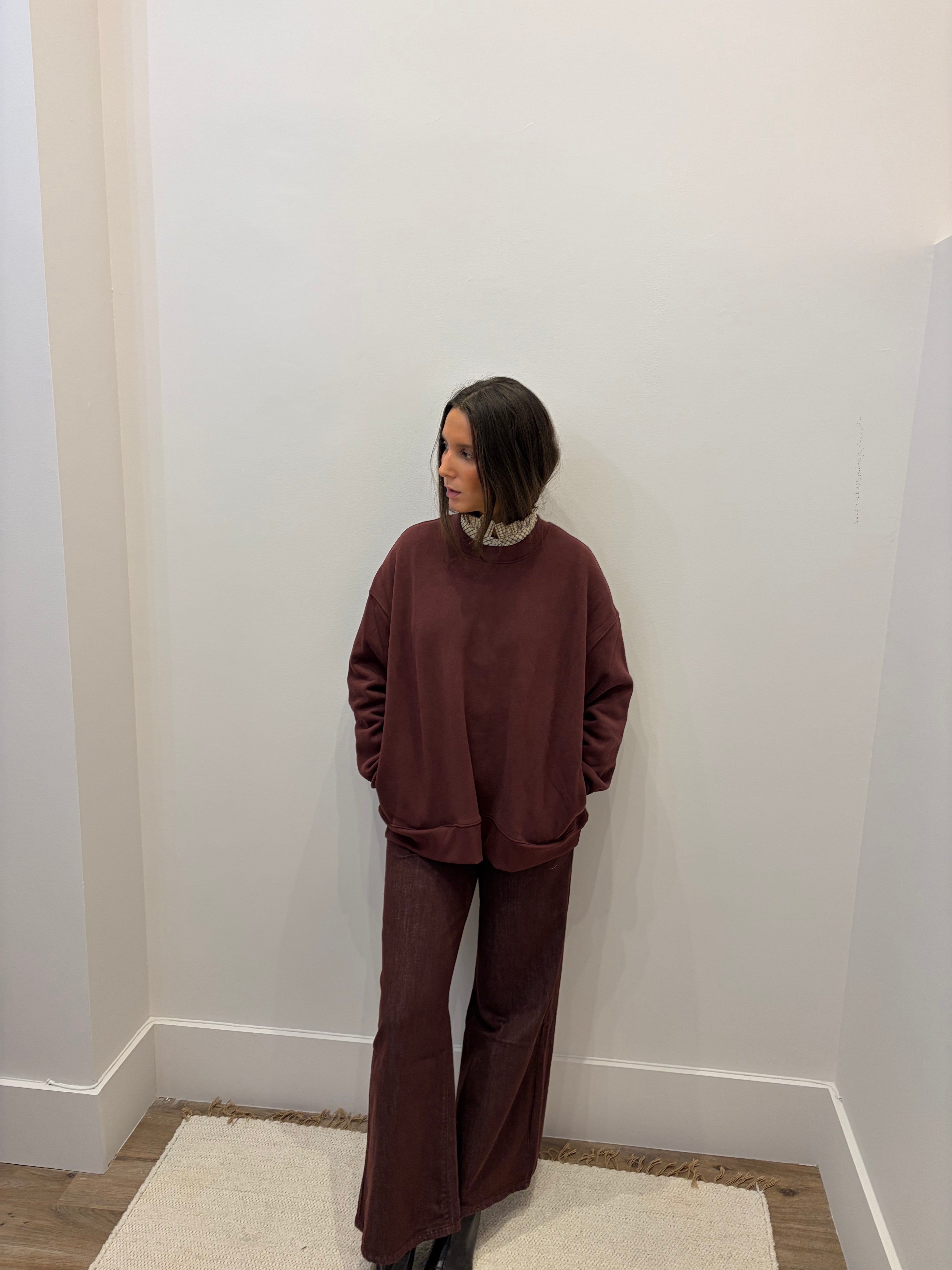 Pantalón denim burdeos. Tiro alto. Bolsillos.