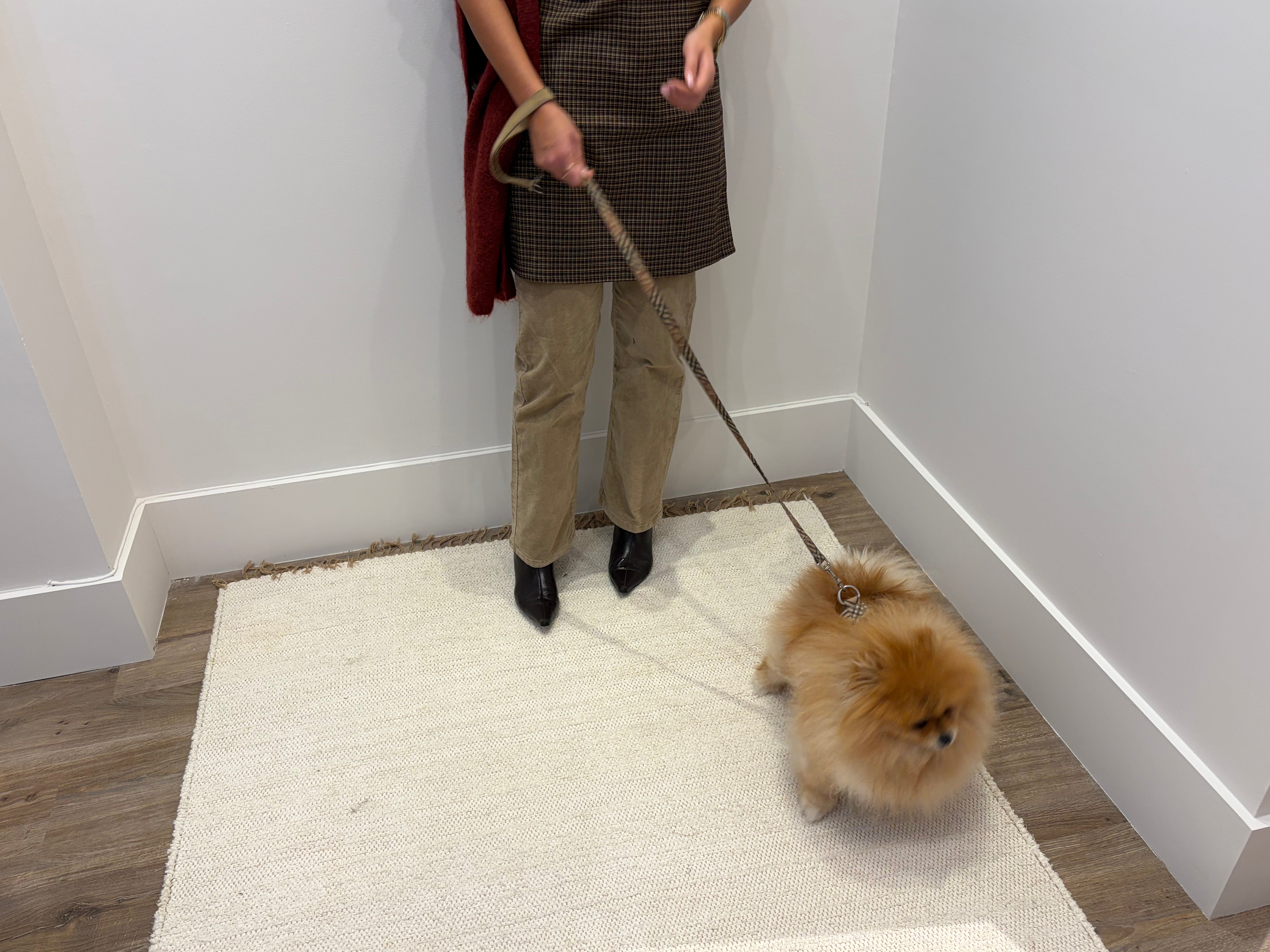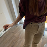 Pantalon efecto pana. Tiro alto. Doble botón.
