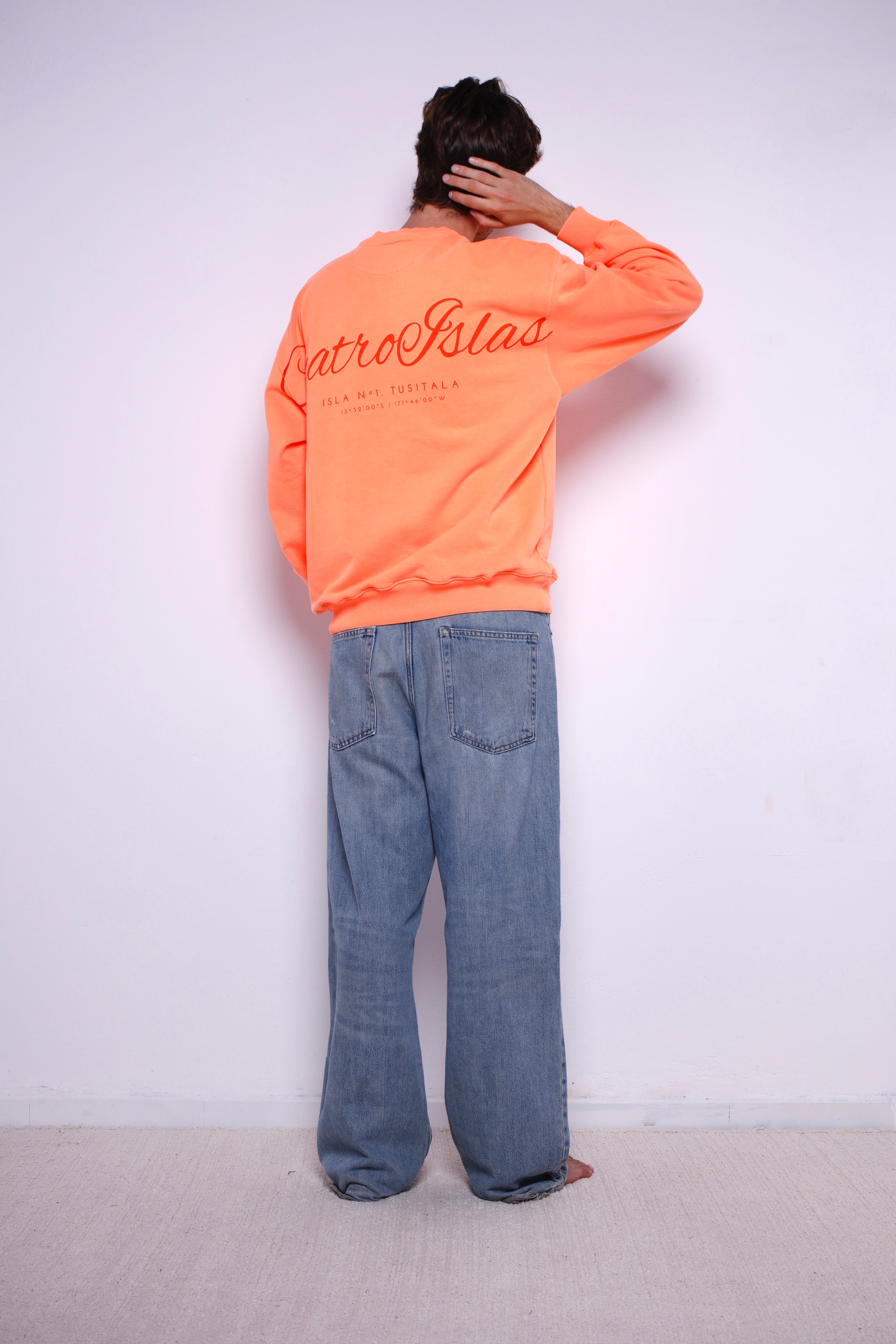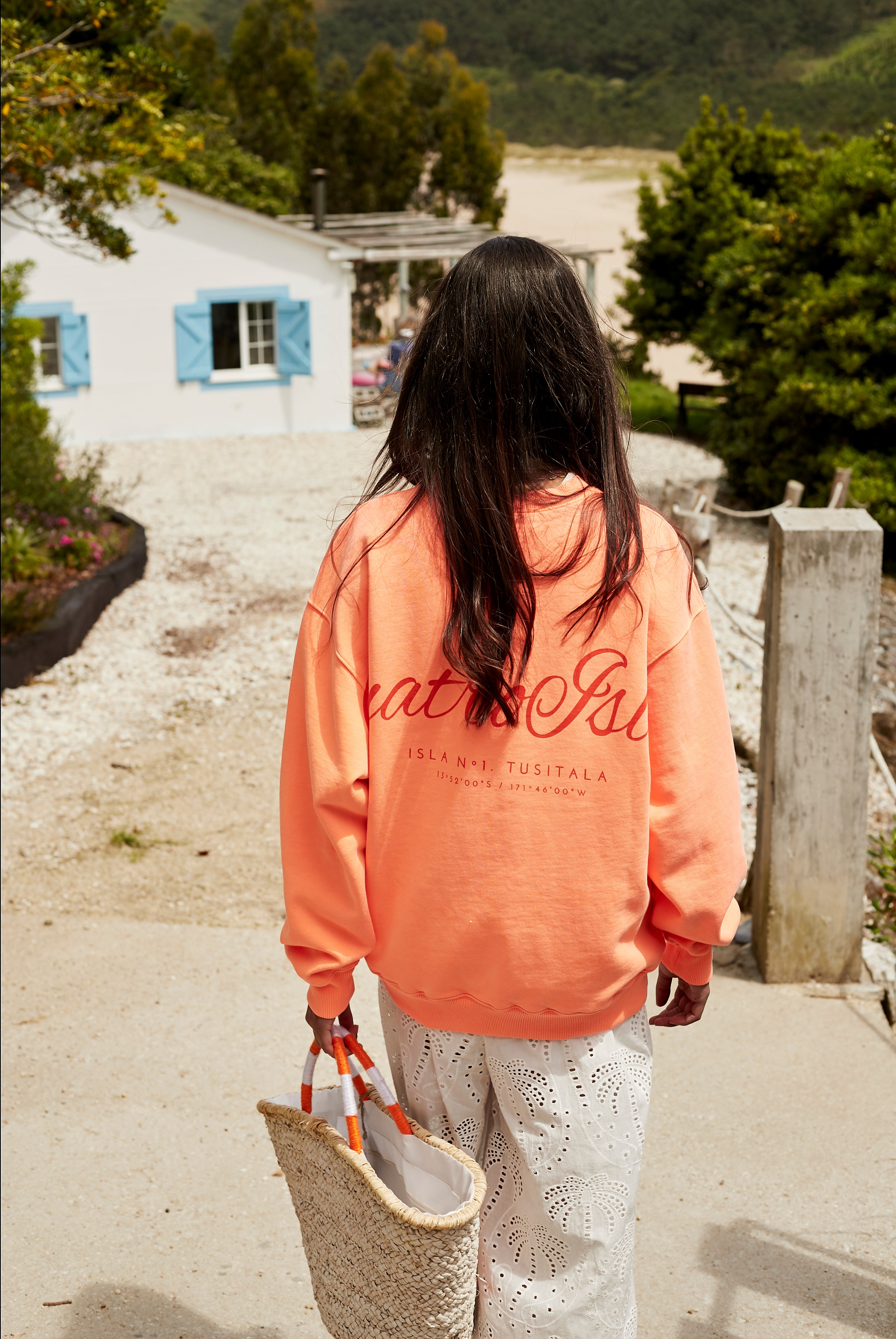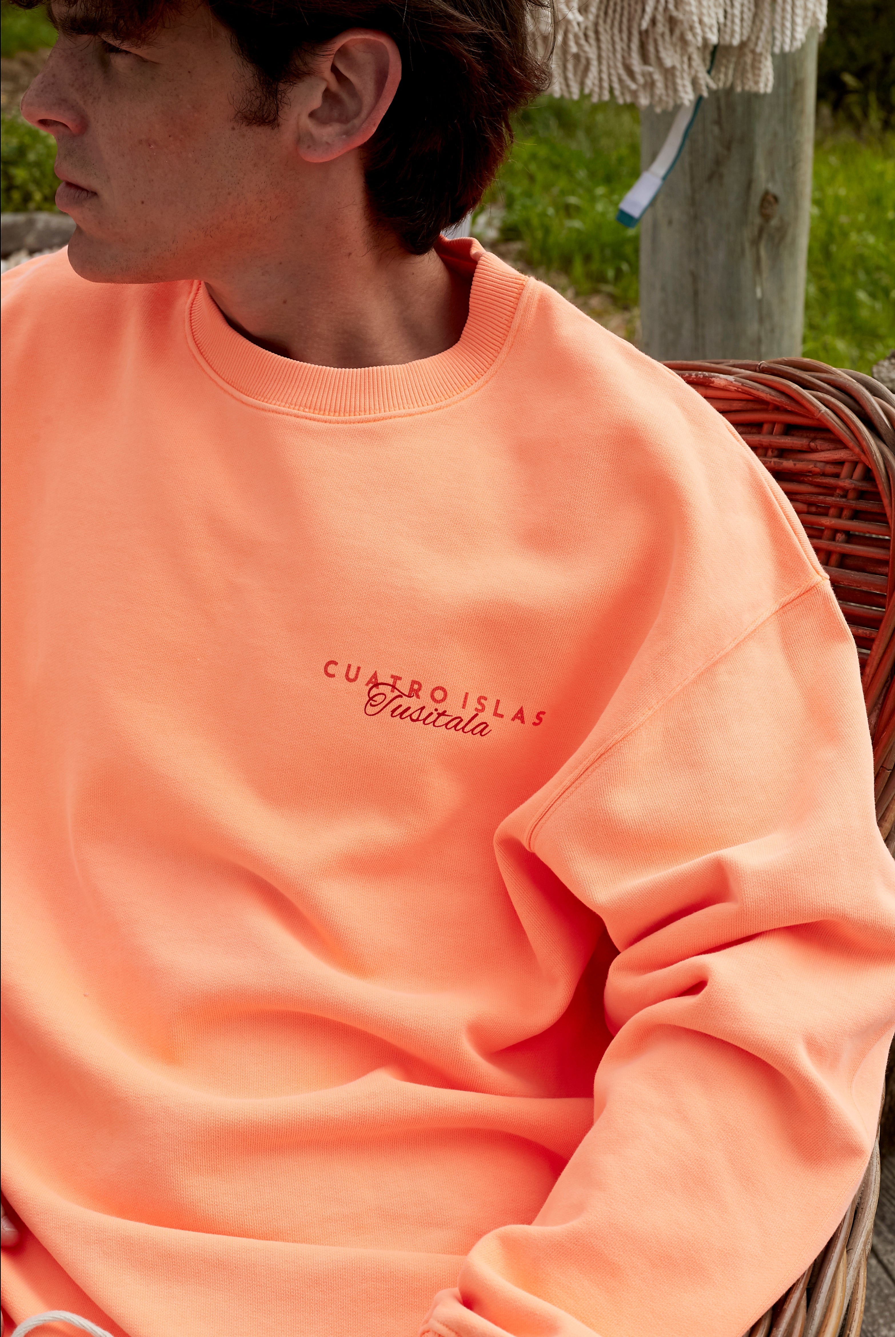 Sudadera algodón rosa fluor. Bordado palmera espalda.