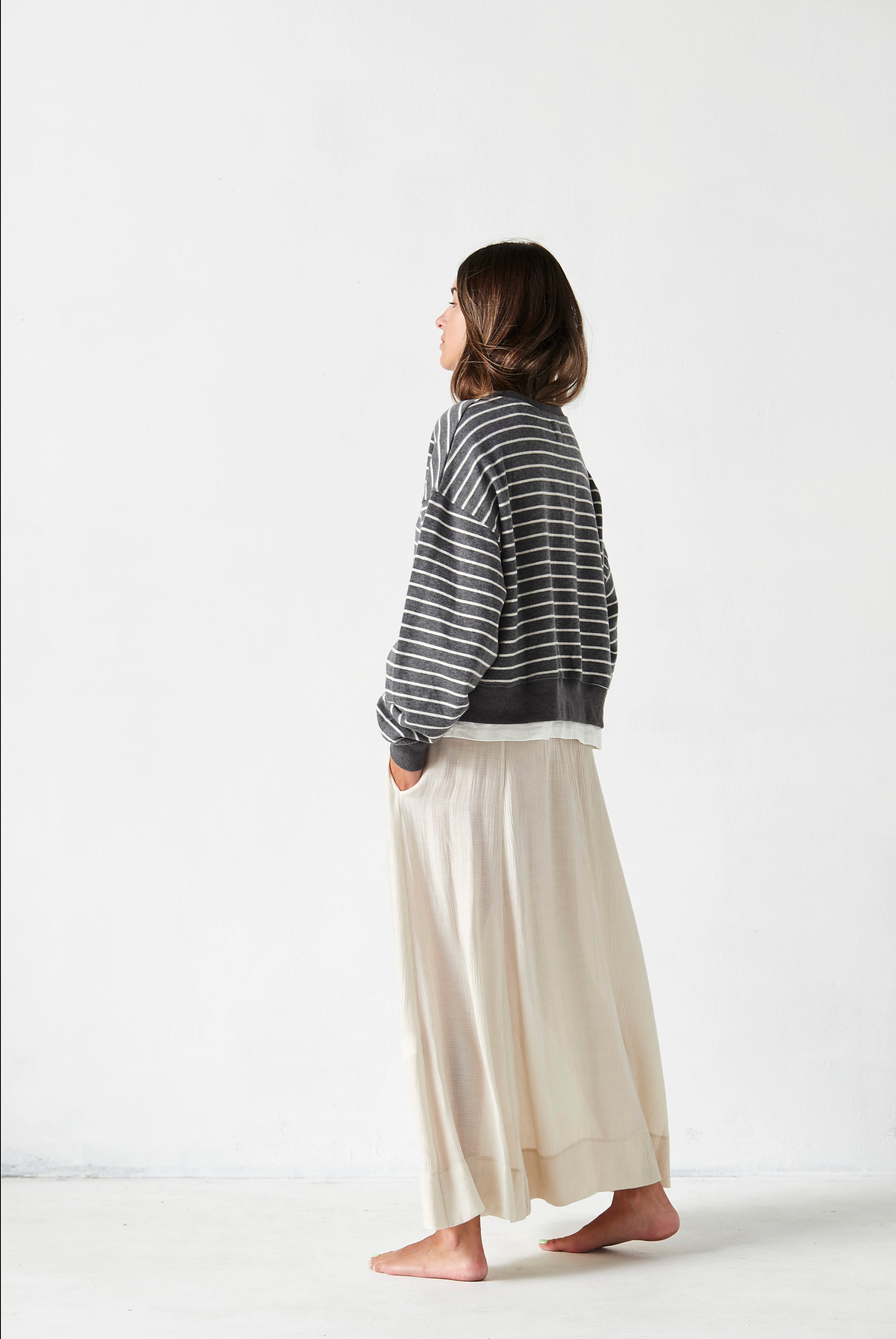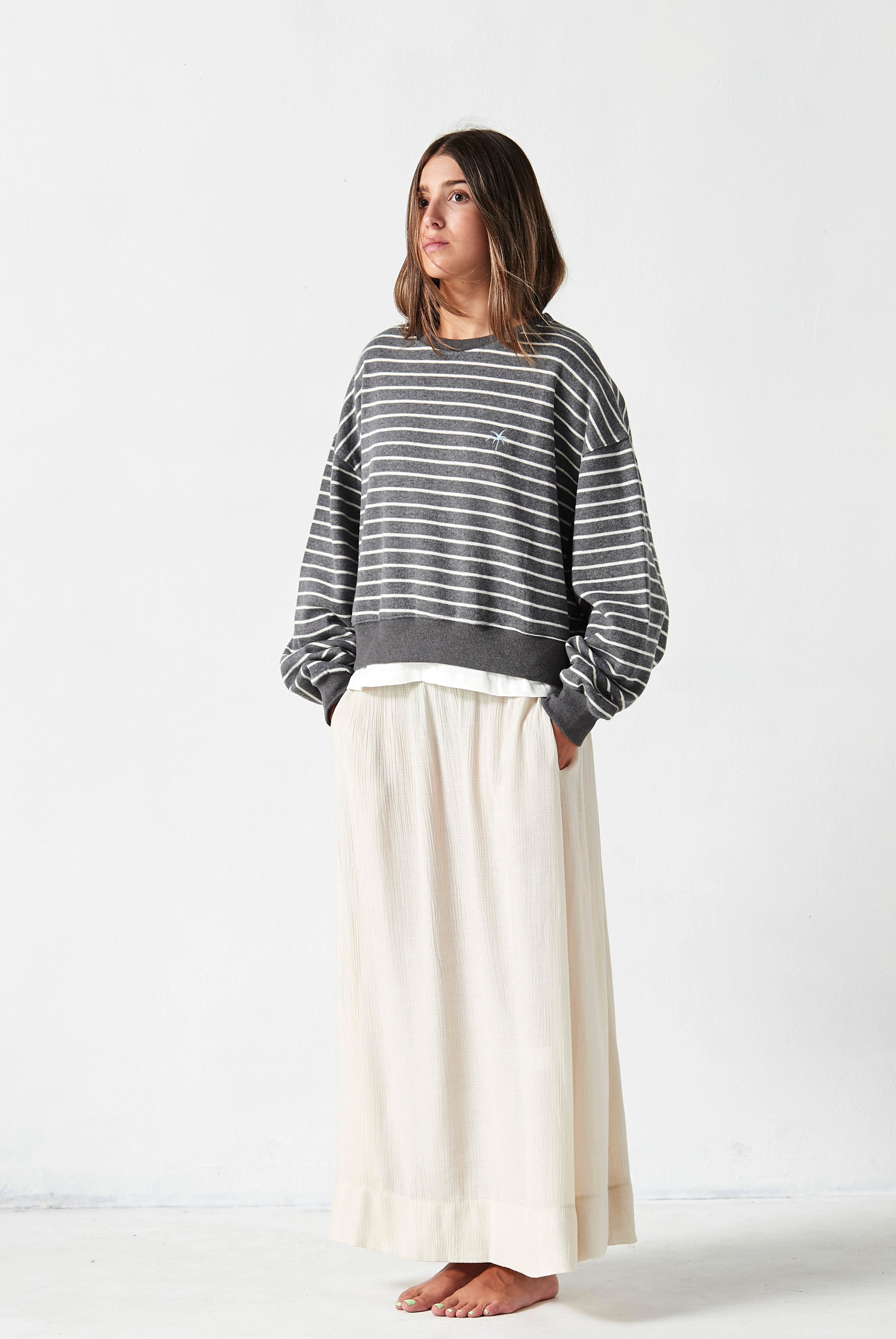 Sudadera rayas punto, bordado palmera. Bajo efecto camiseta.