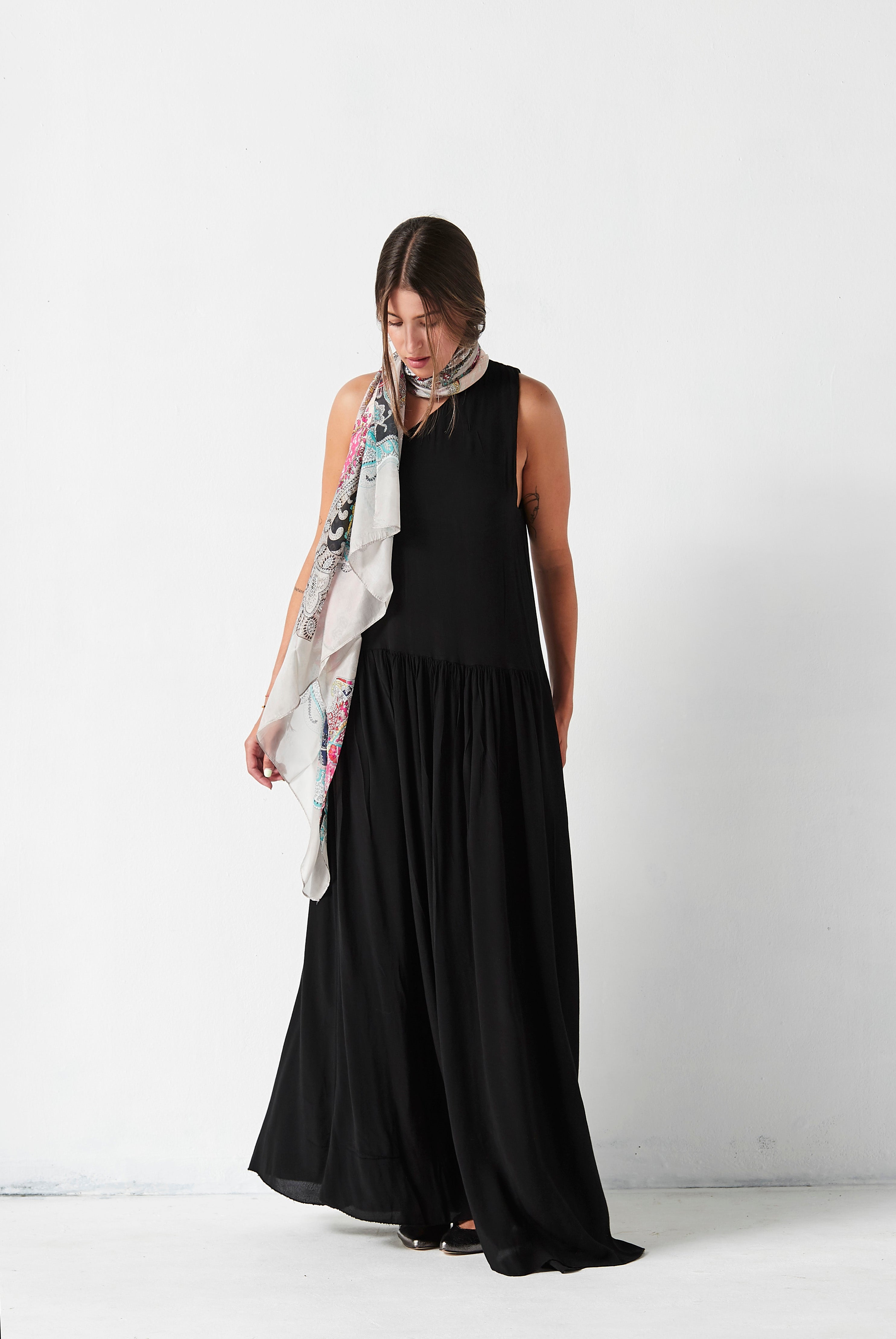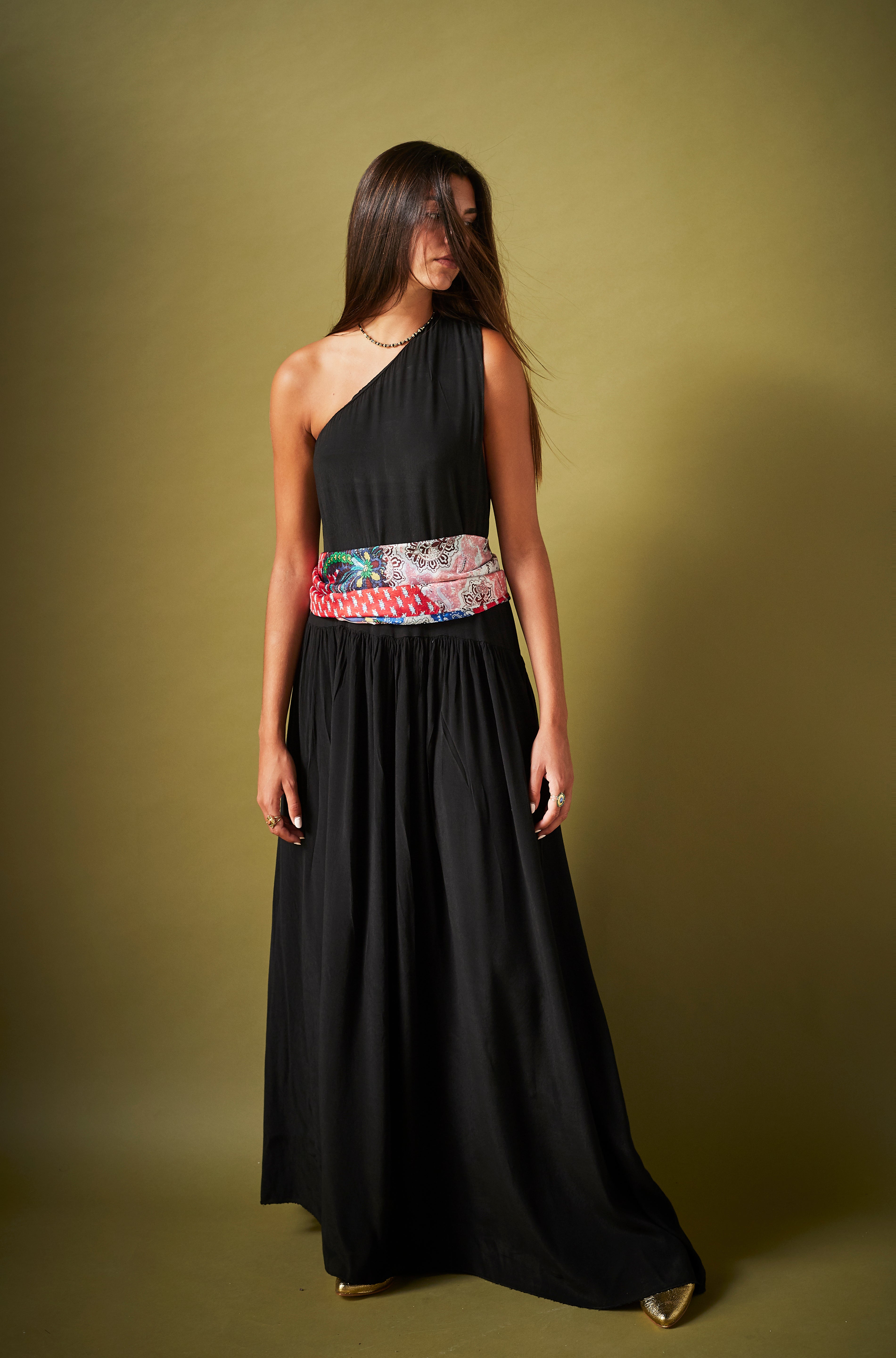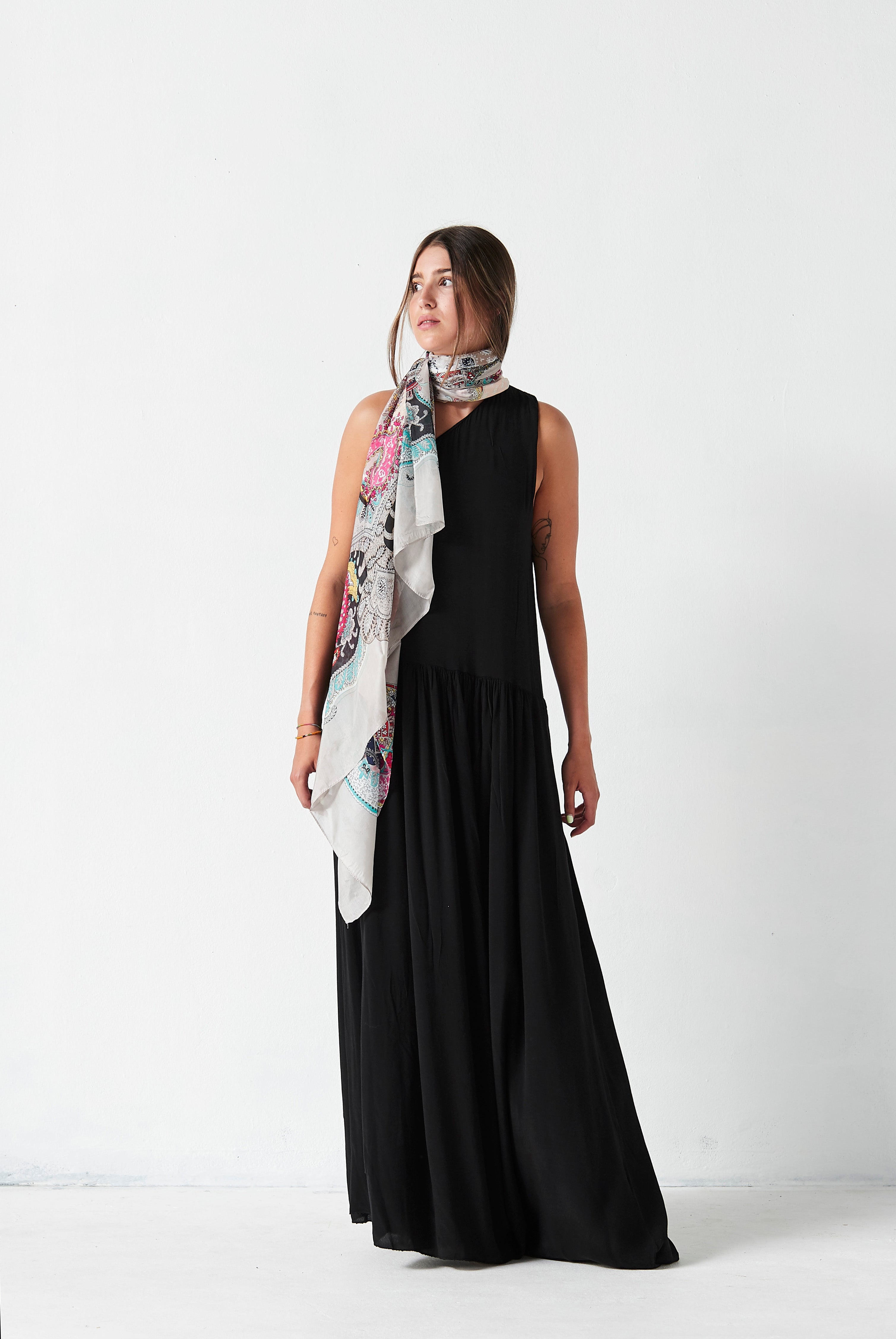 Vestido asimétrico largo. Bajo ligeramente asimétrico