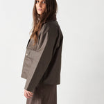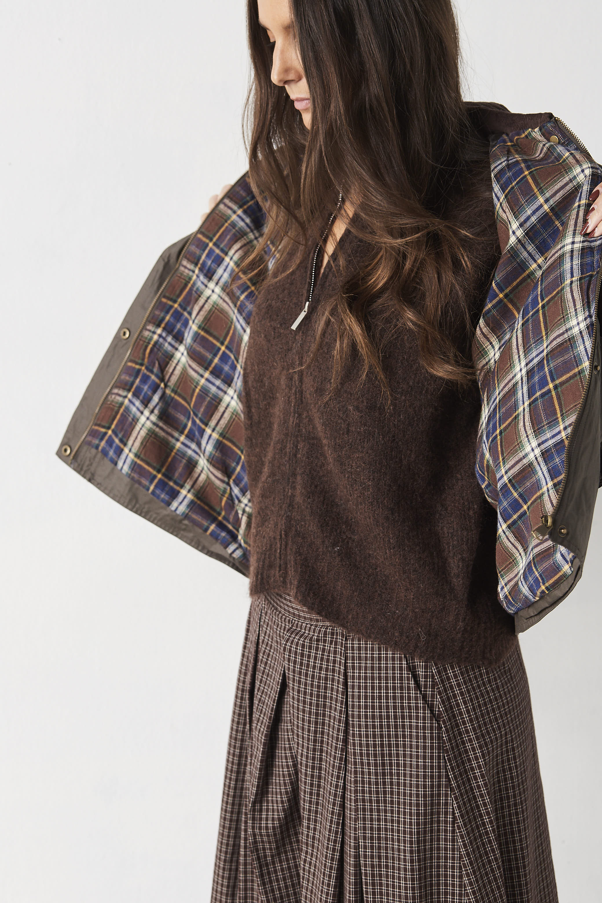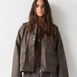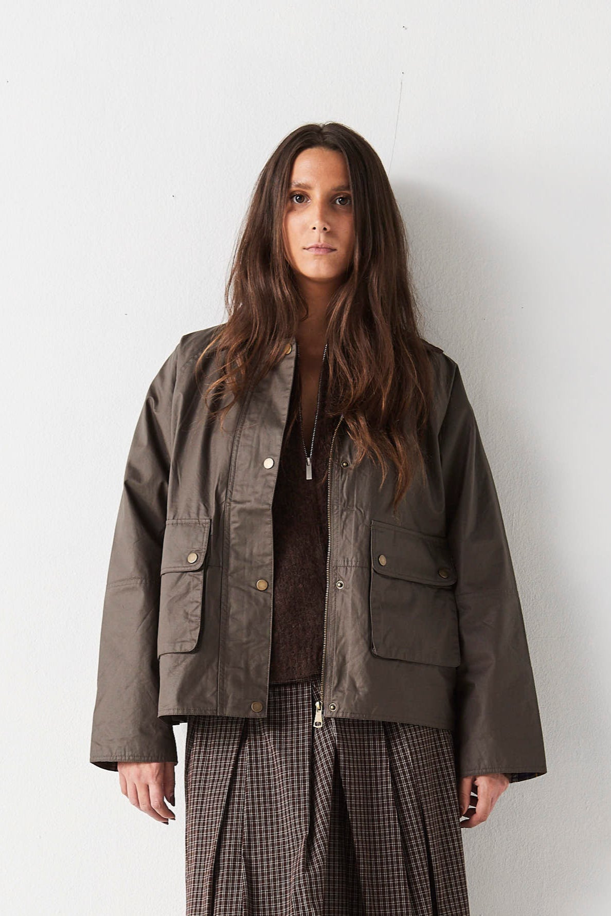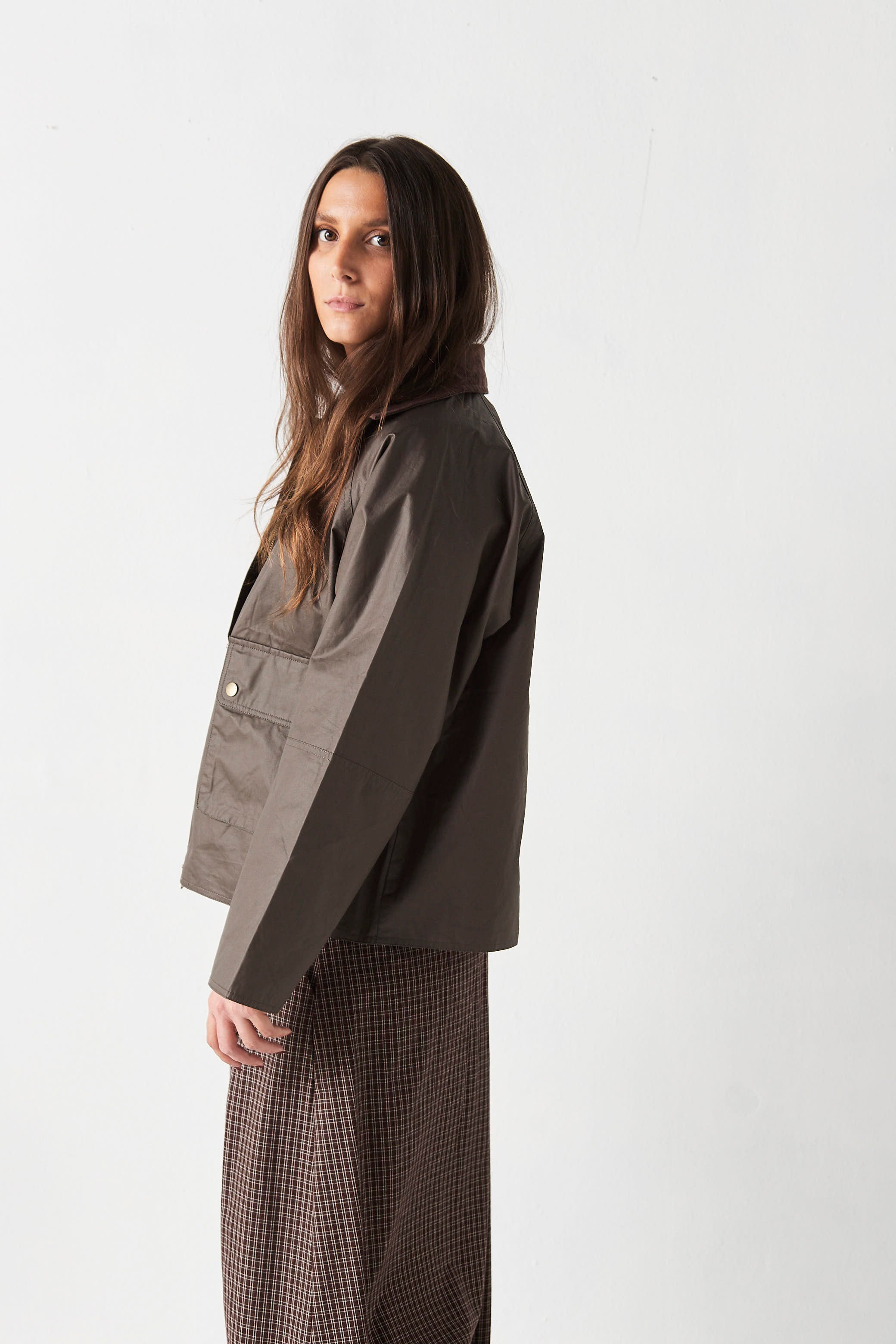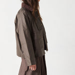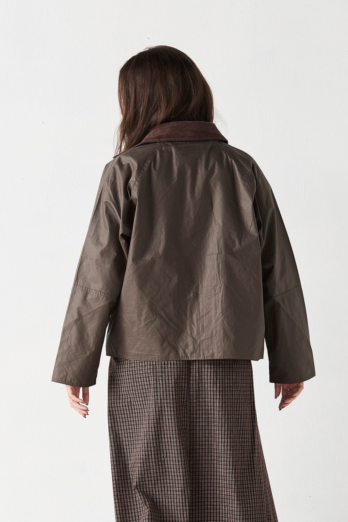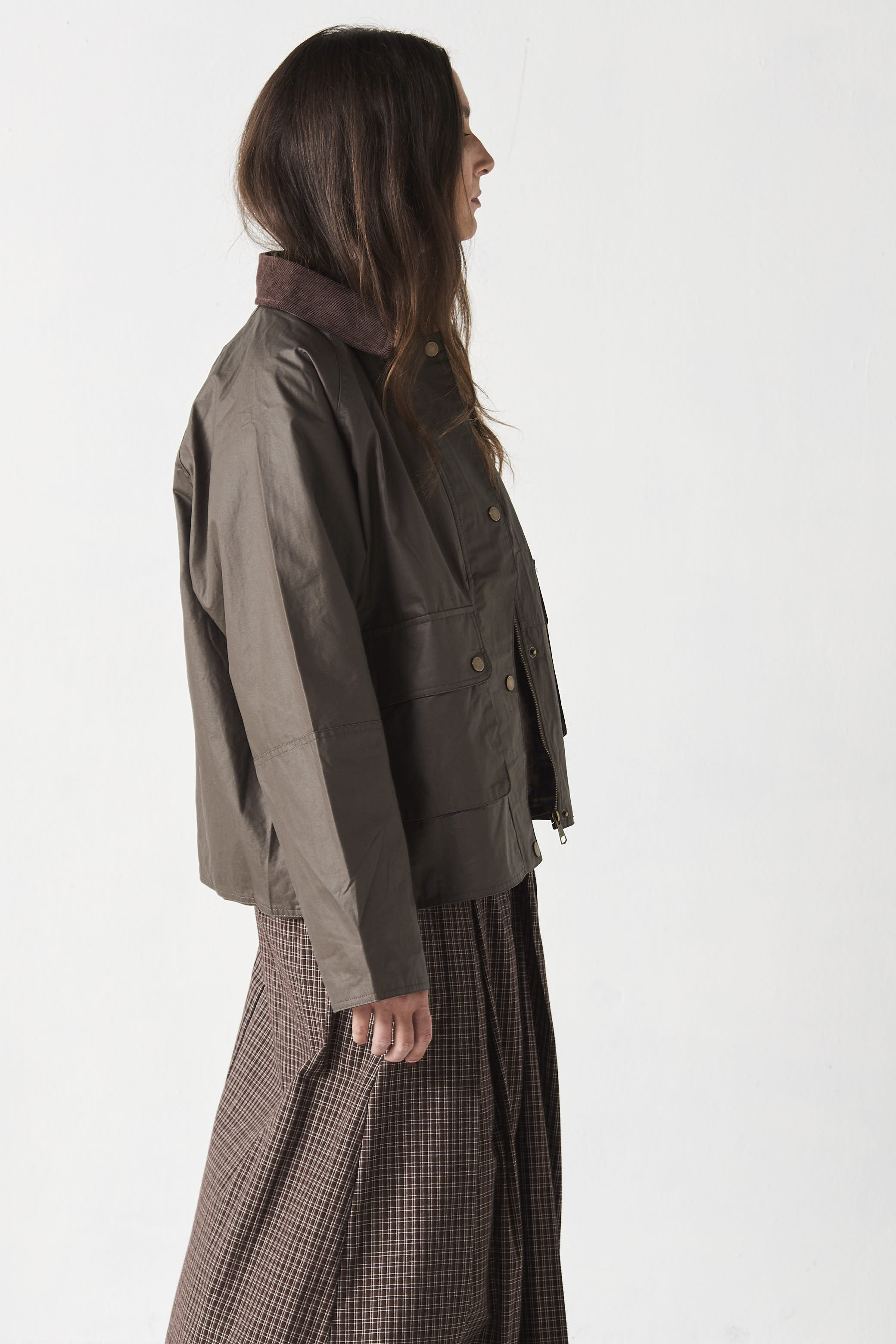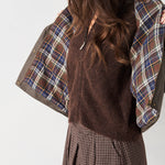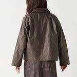 Cazadora de algodón encerada. Cuello de pana. Forro de cuadros.