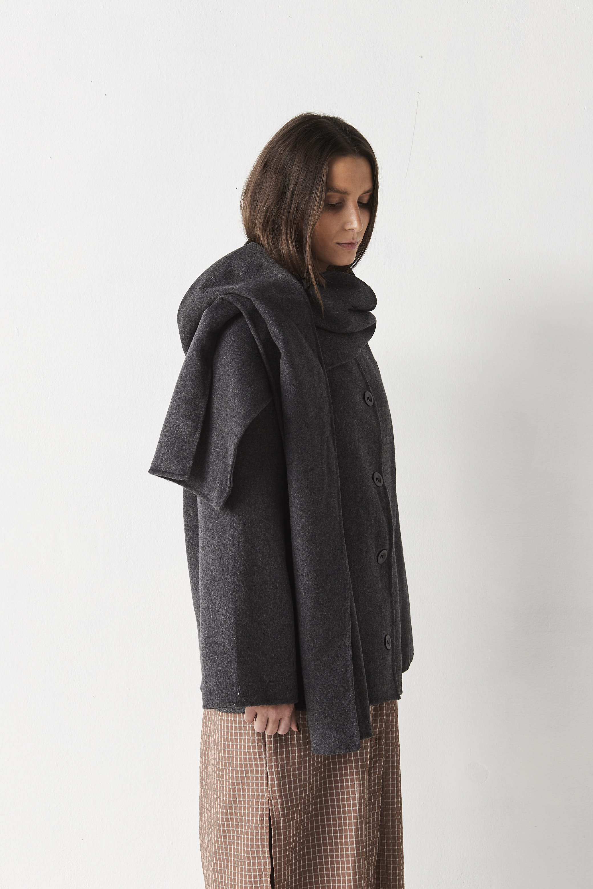 Chaquetón de paño con chal superpuesta (dos piezas).