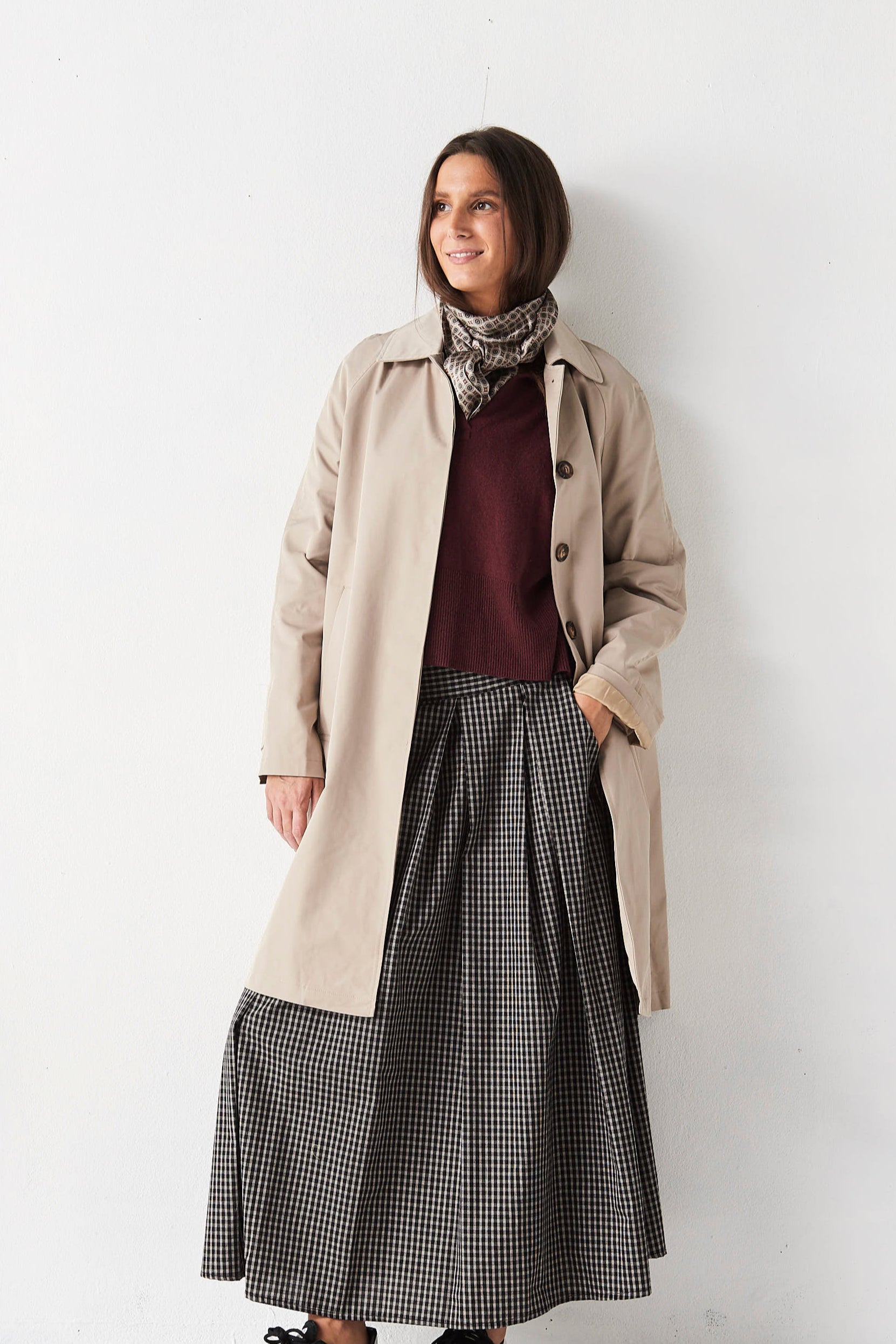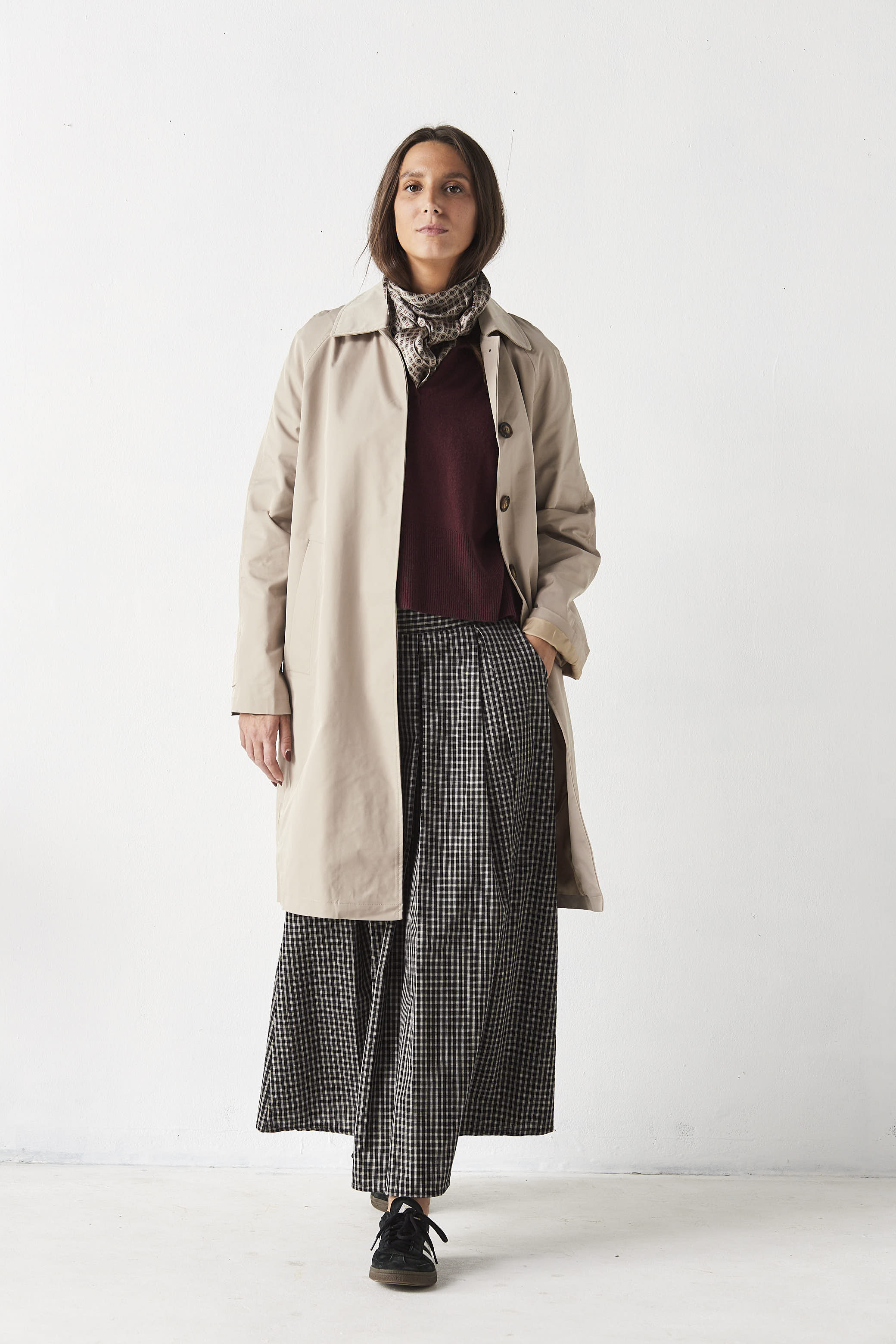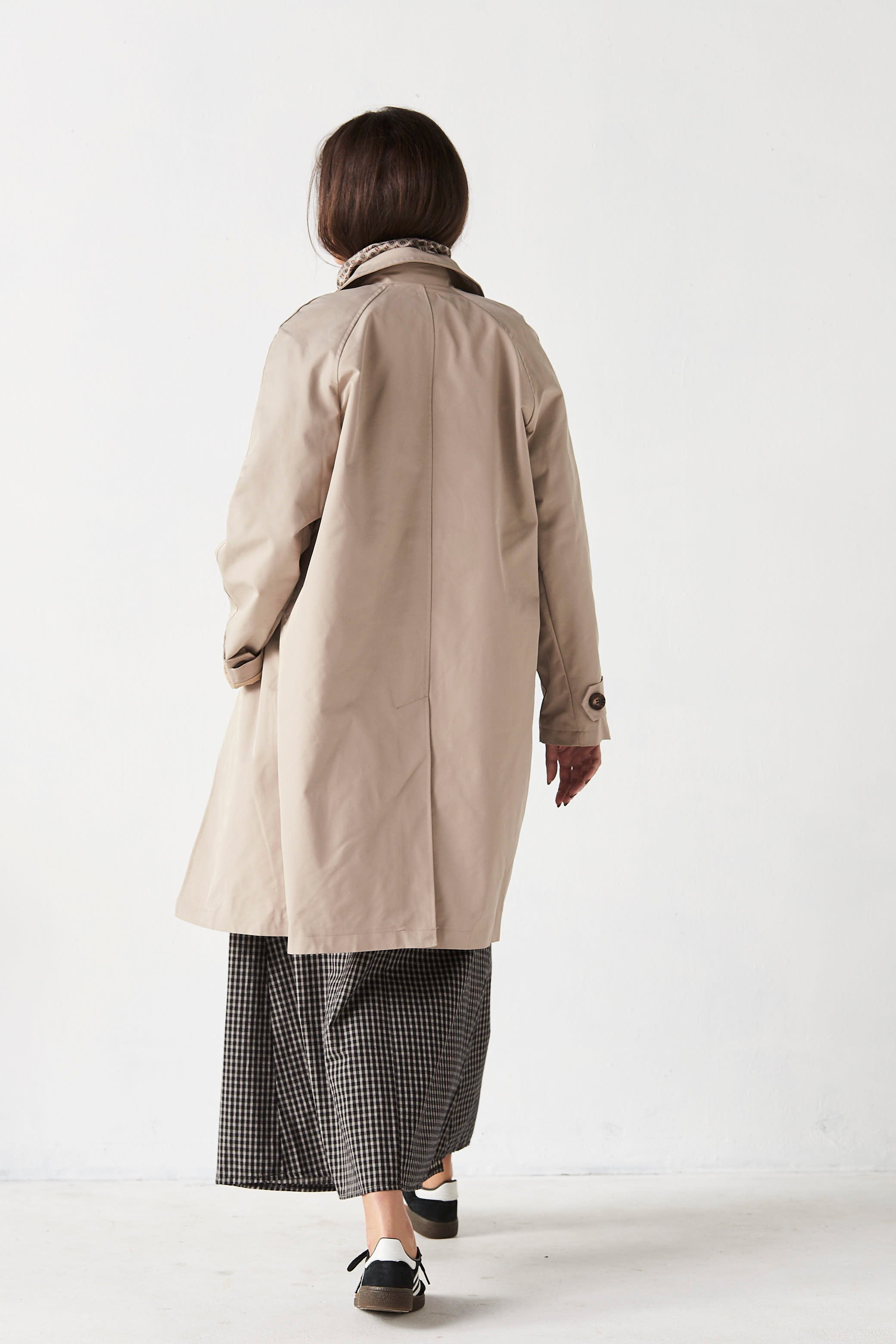 Gabardina midi, tejido impermeable.