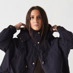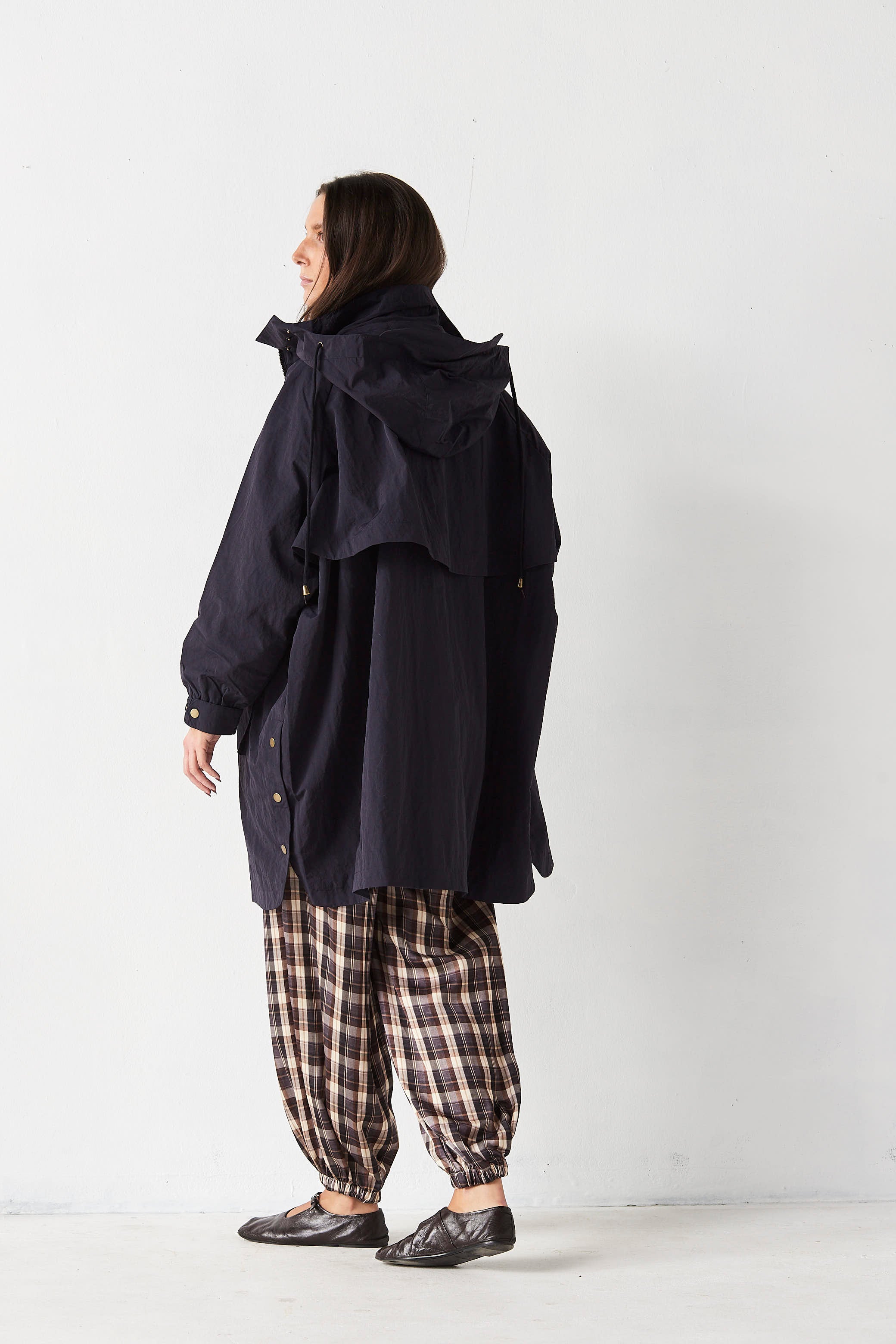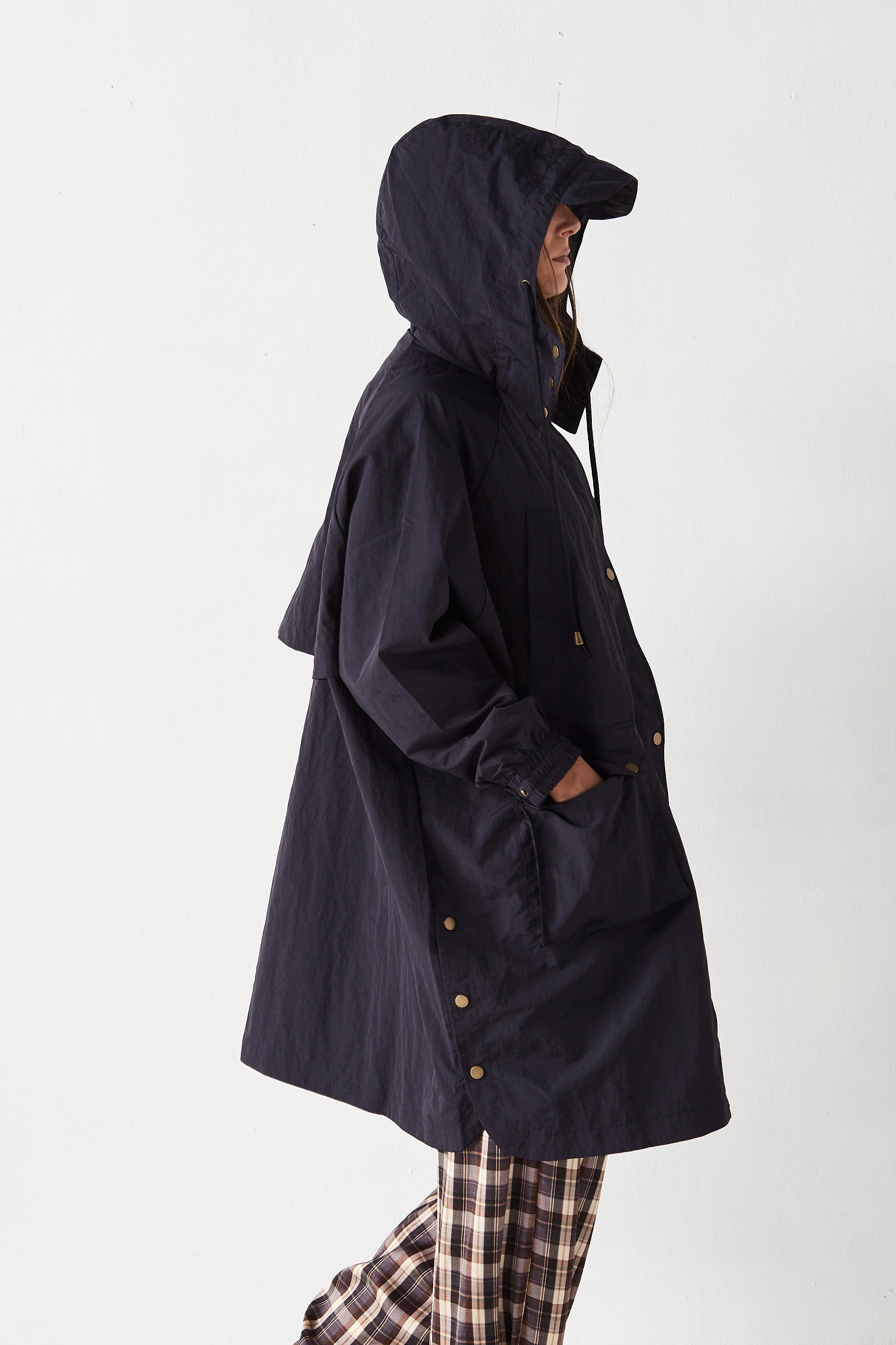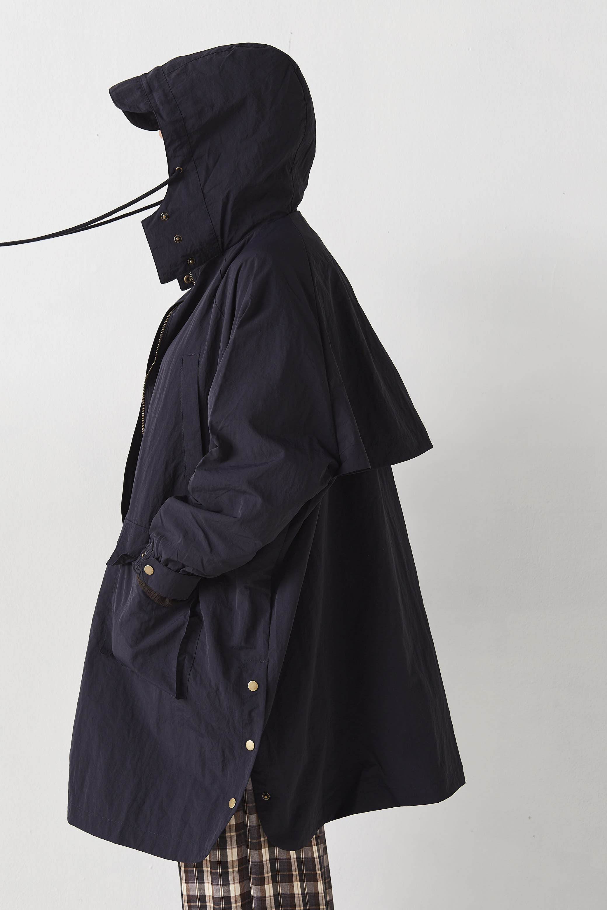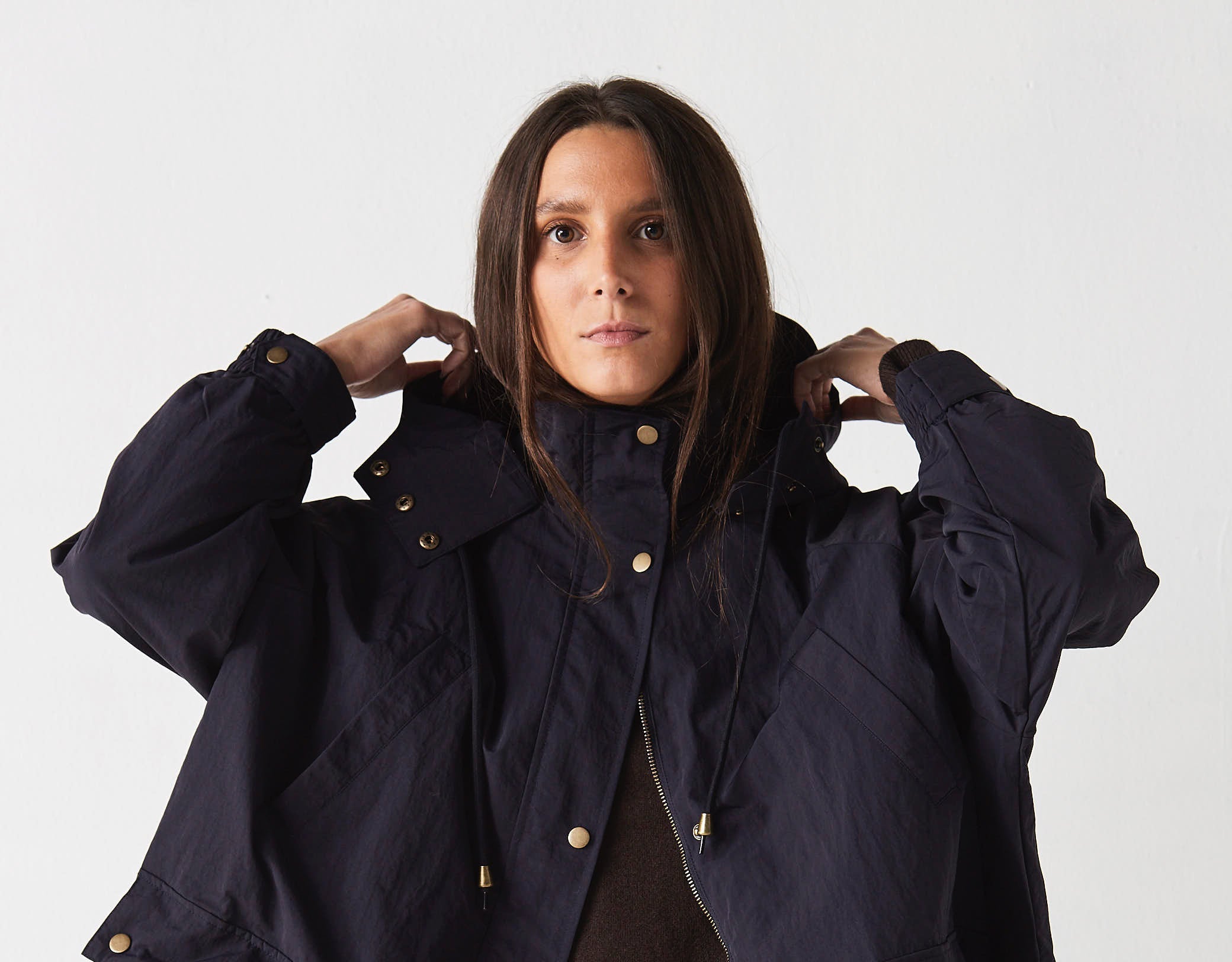 Parka cortavientos con capucha visera. Forro interior a contraste.